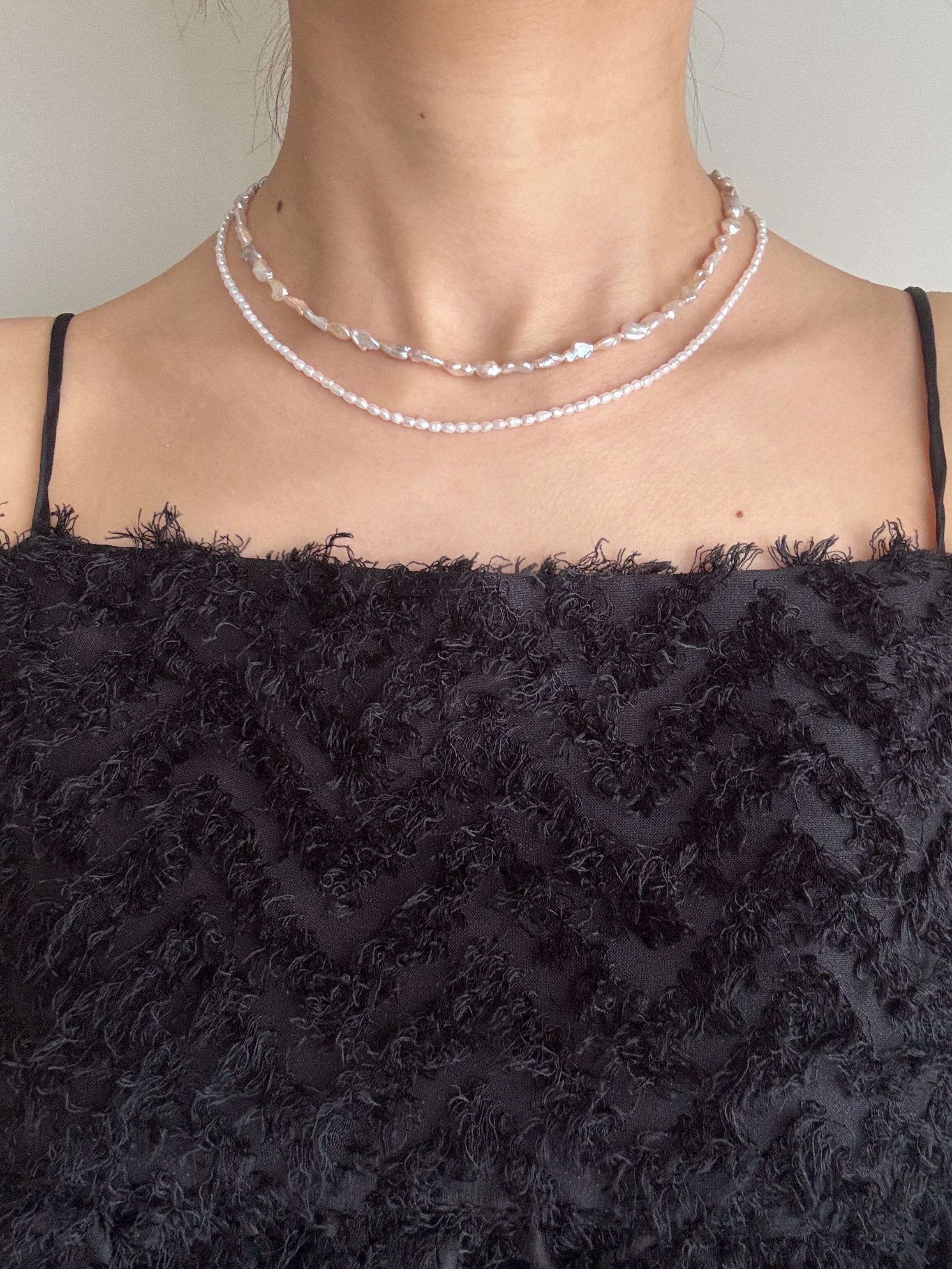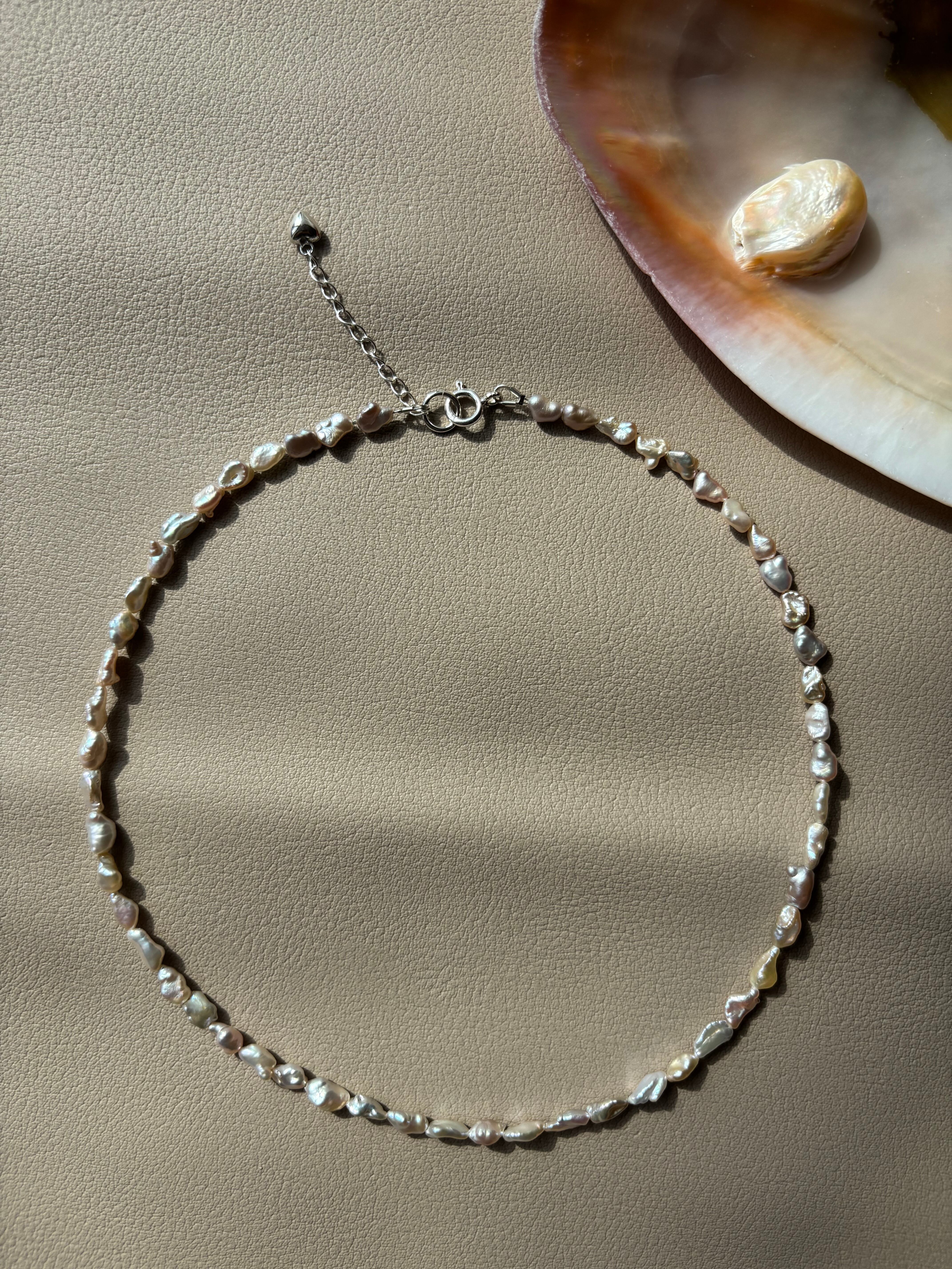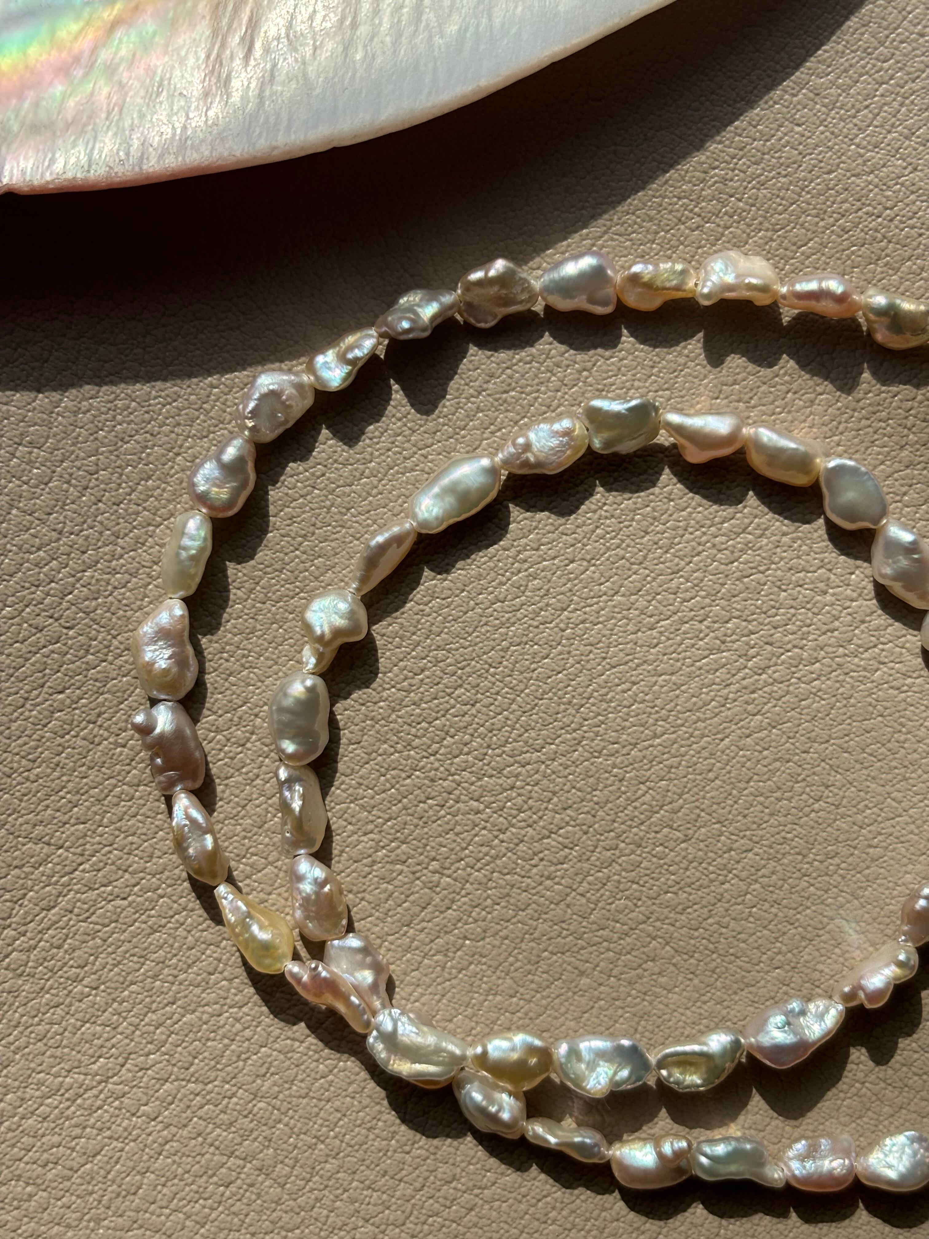 光に当たると、ピンク・紫・ブルーにほんのり輝き、とっても綺麗な小粒パールです♡
