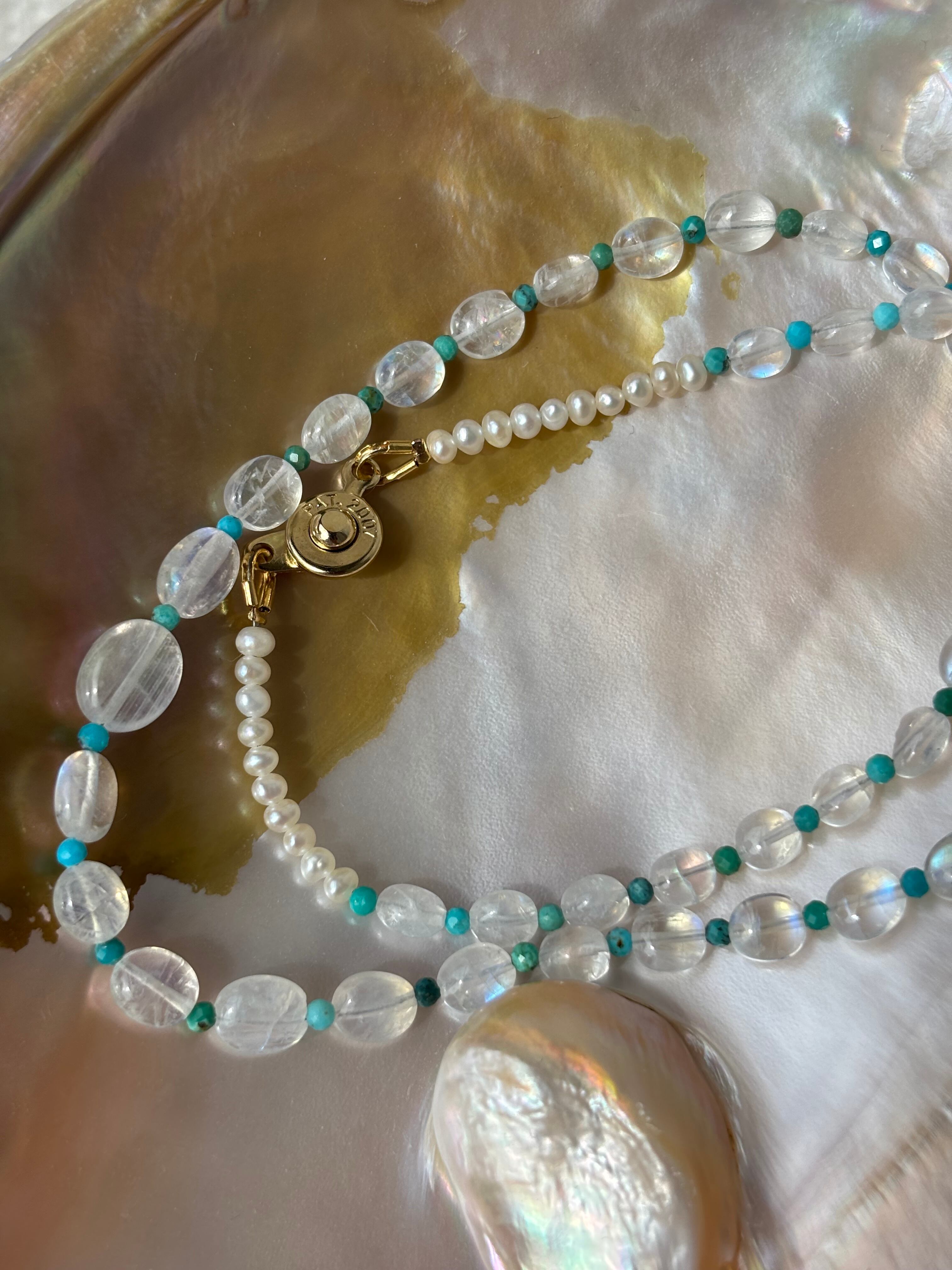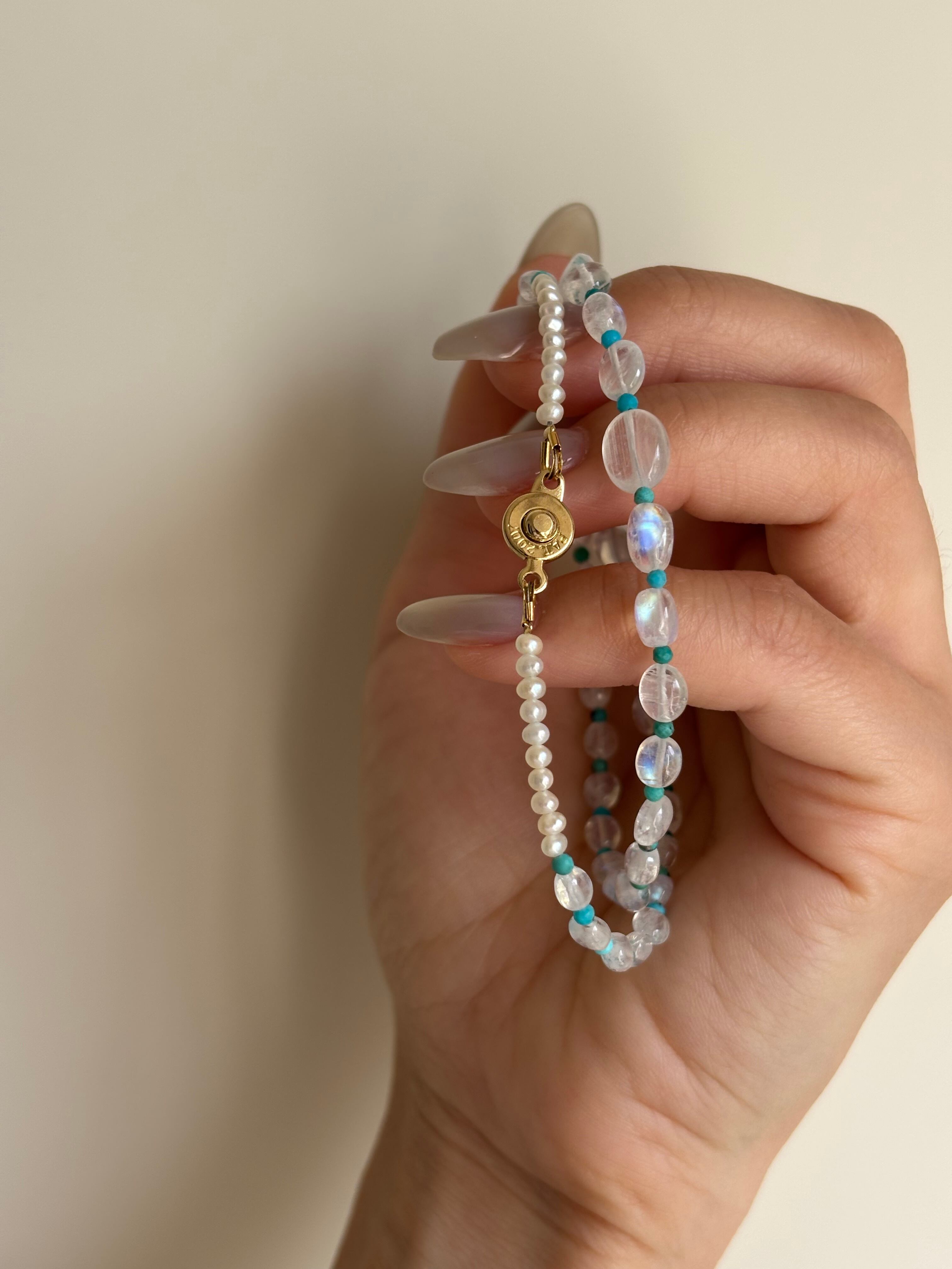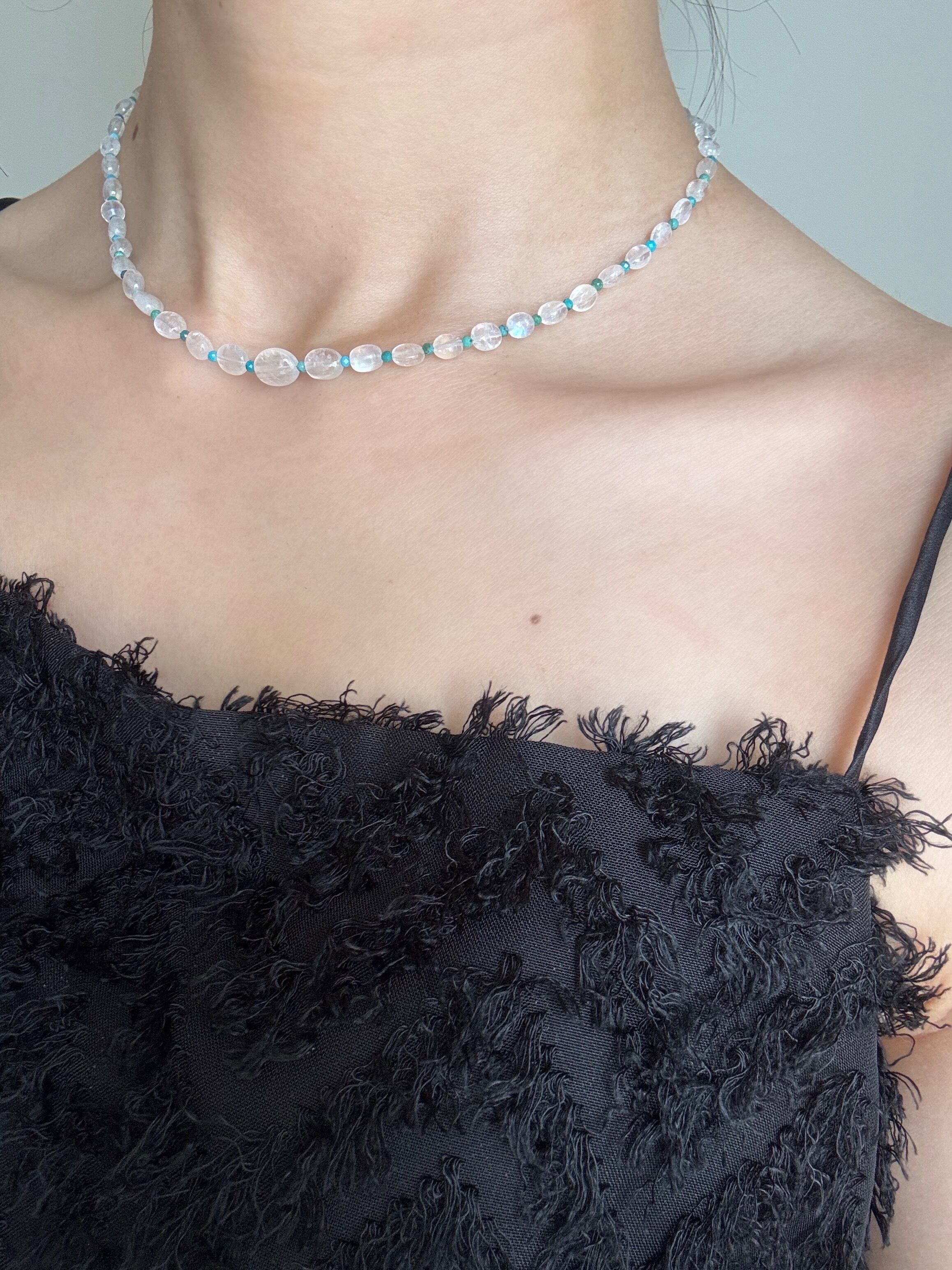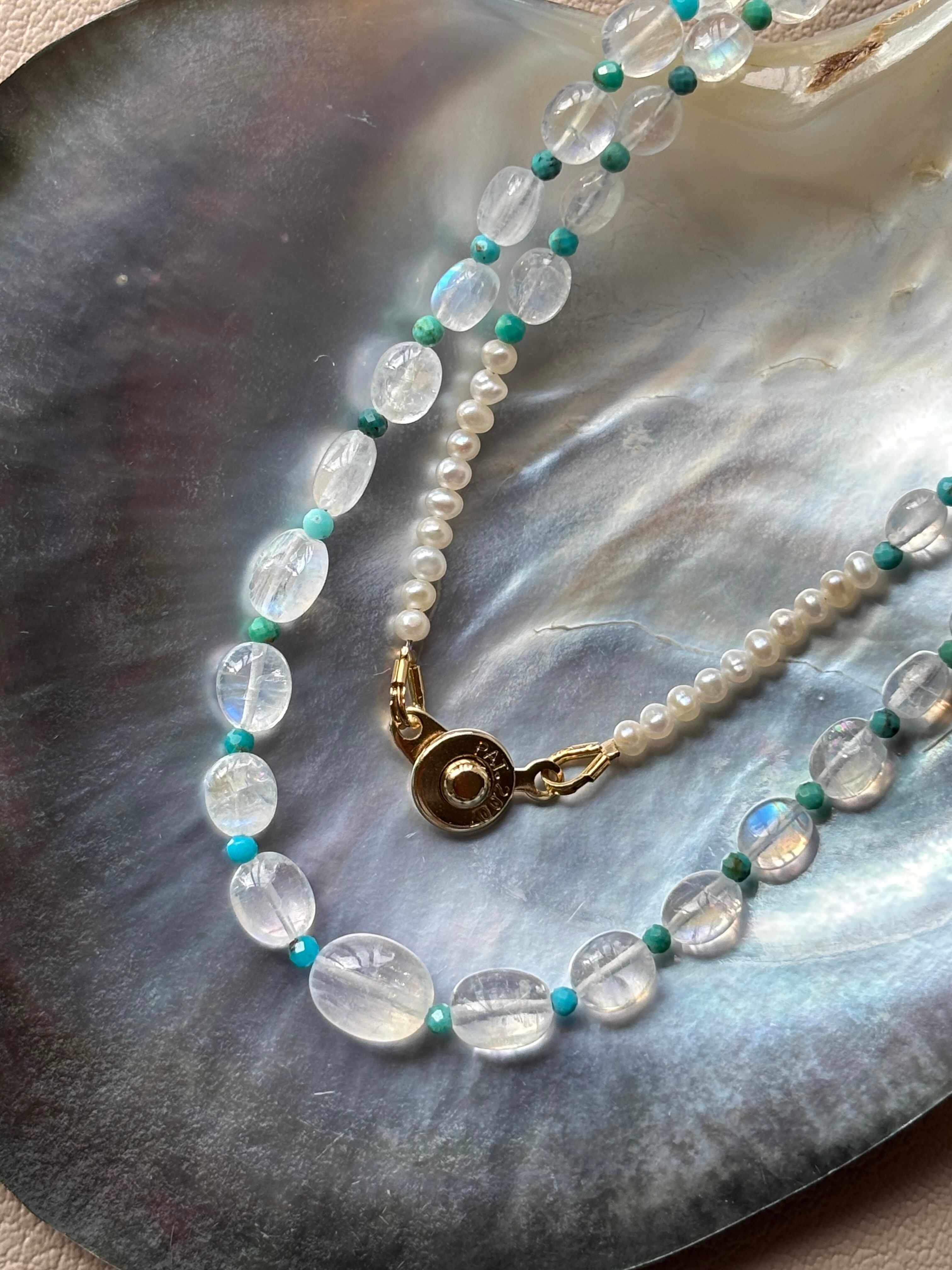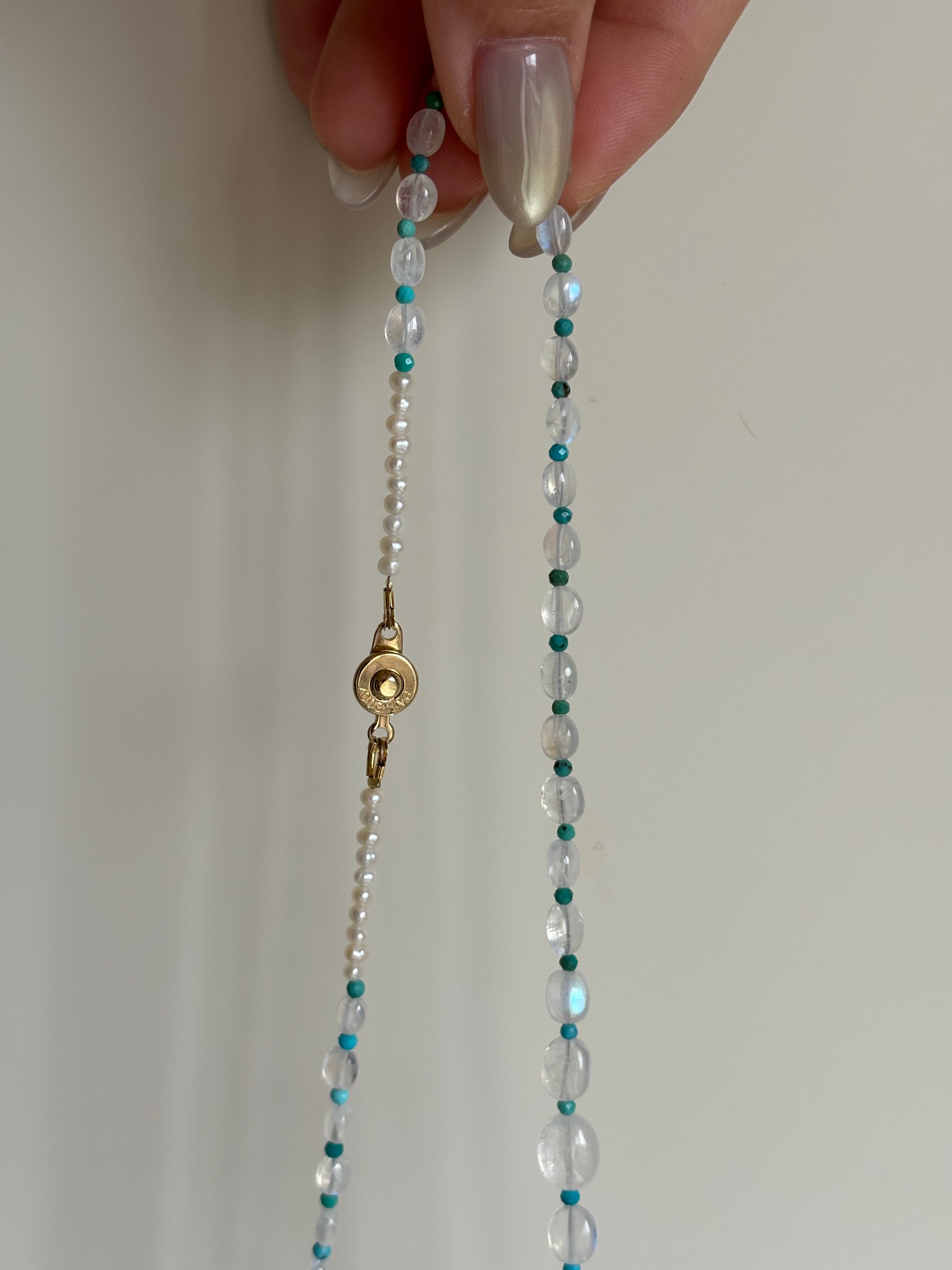 小粒のターコイズ とブルームーンストーンで華奢なネックレスをお作りいたしました!