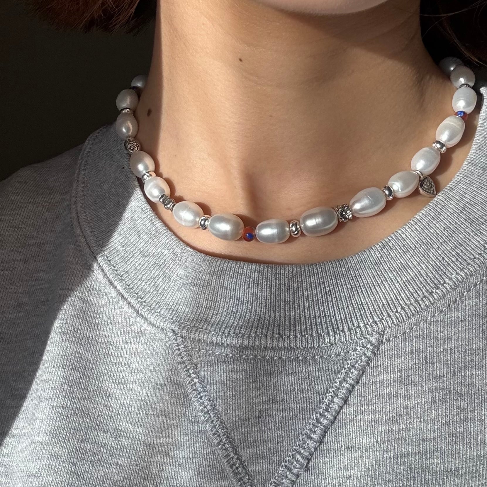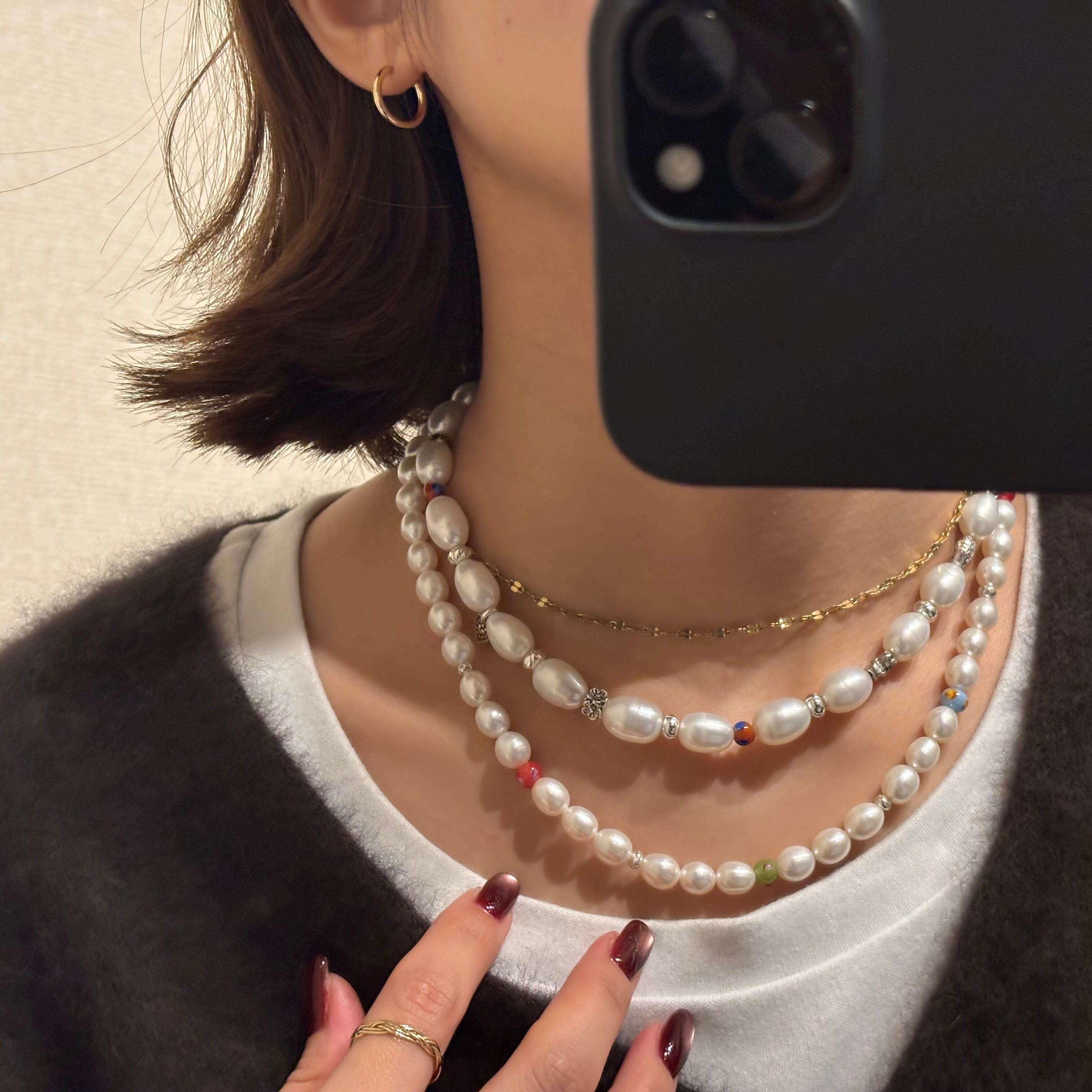\\大ぶり淡水パールを使用したカジュアルネックレス//