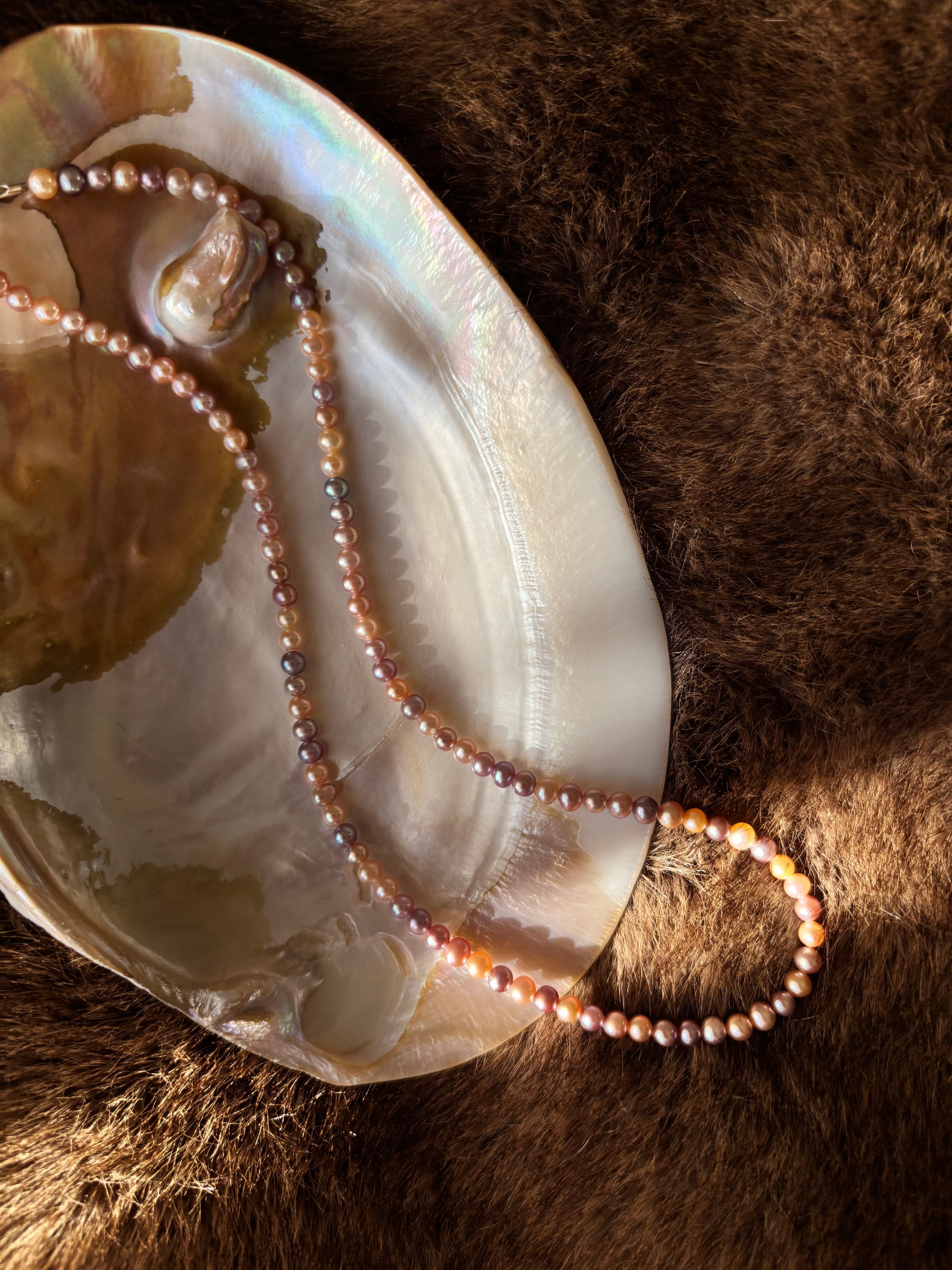 レアなお色で形もかなりまん丸なツヤツヤパールネックレスでございます!