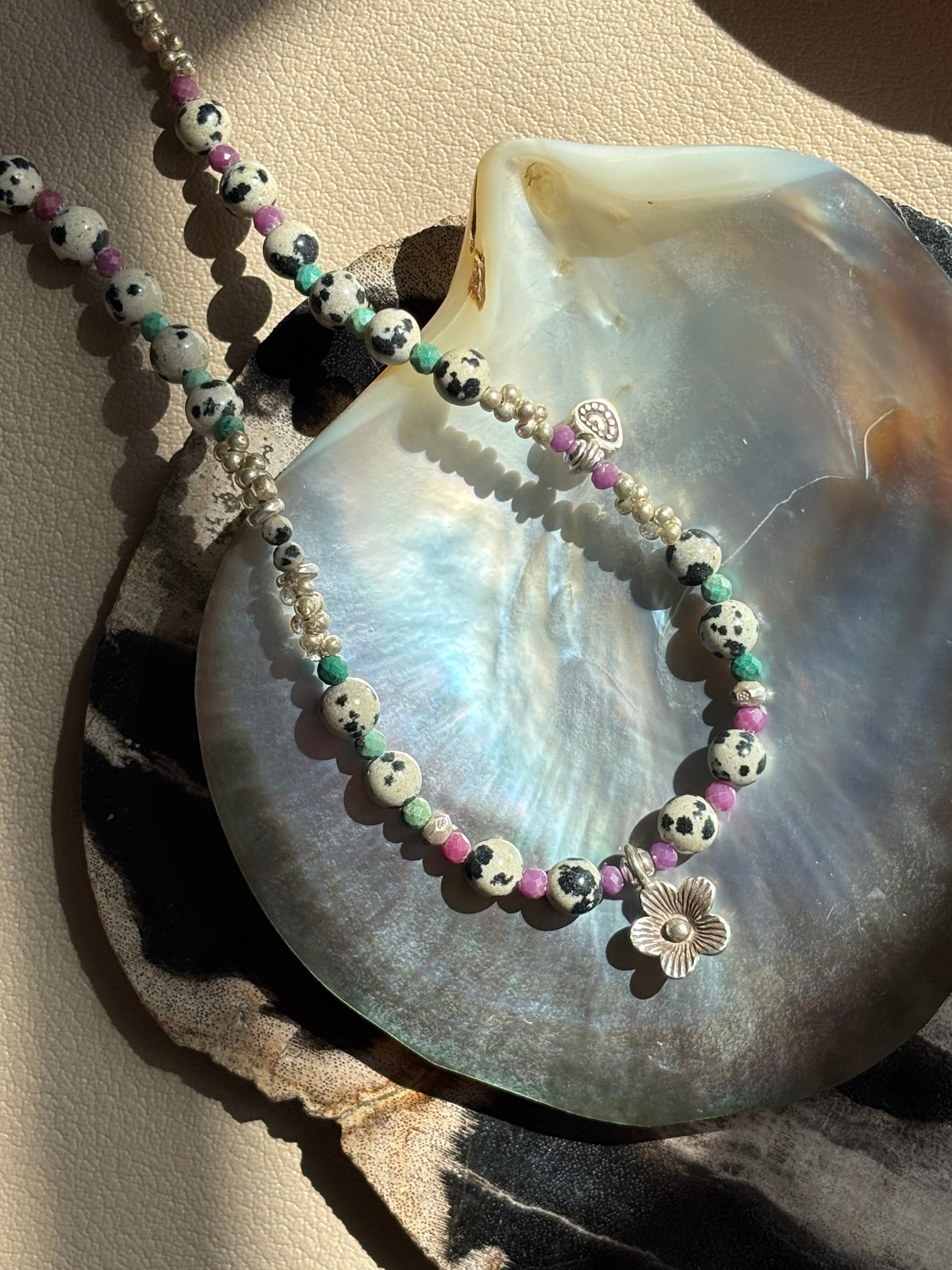 その他:ダルルメシアンジャスパー・フォスフォシデライト・クリソコラインクォーツ・KarenSilverチャーム・ silverビース・ビーズ