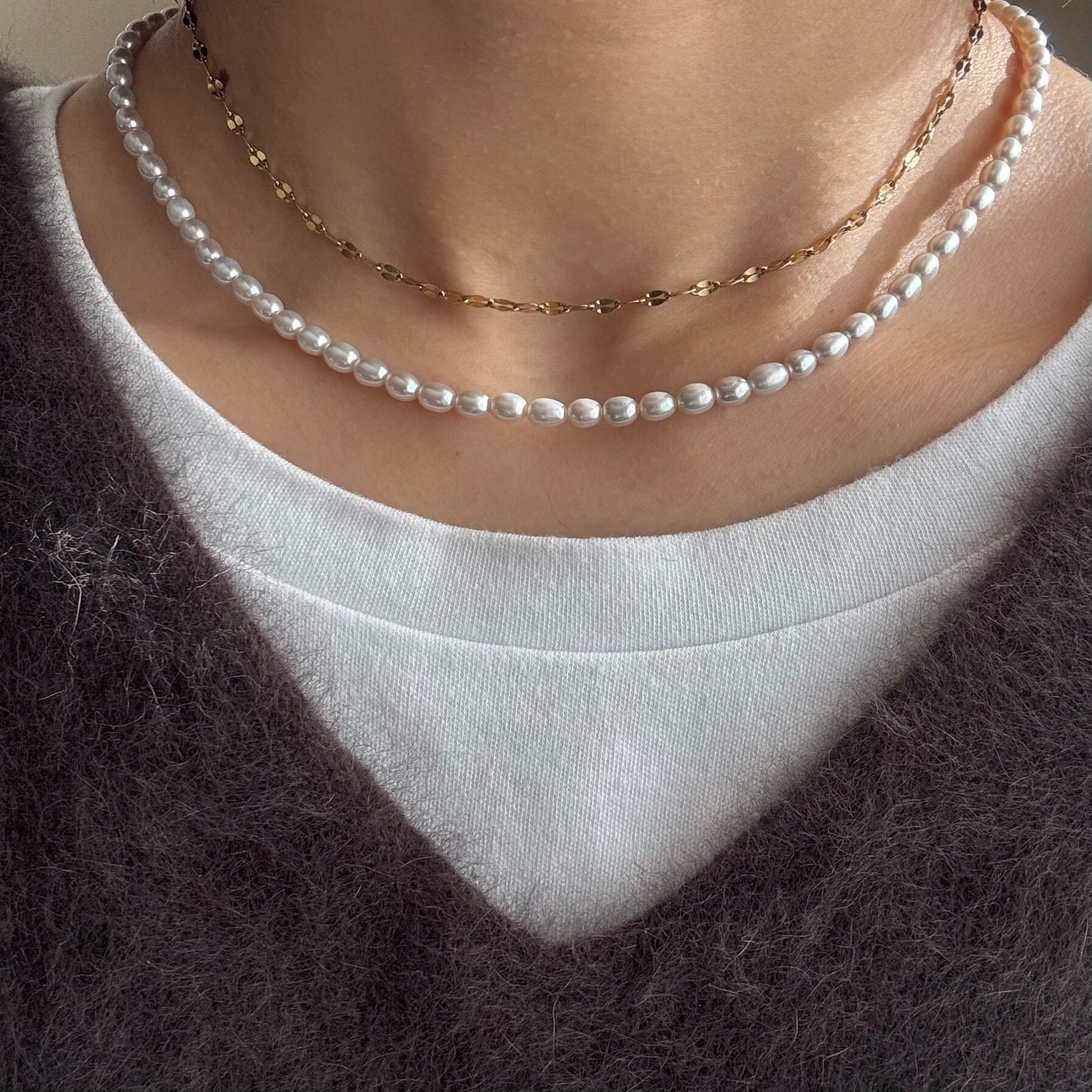 サイズ感ちょうどよく、ほんのりグレーで何にでも合わせやすいネックレスでございます♩
